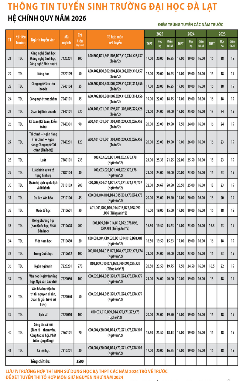 Tổ hợp: A00; D07; X10; X11; X12; A05; A02; B00; B08; X14; X15; X16; B01
