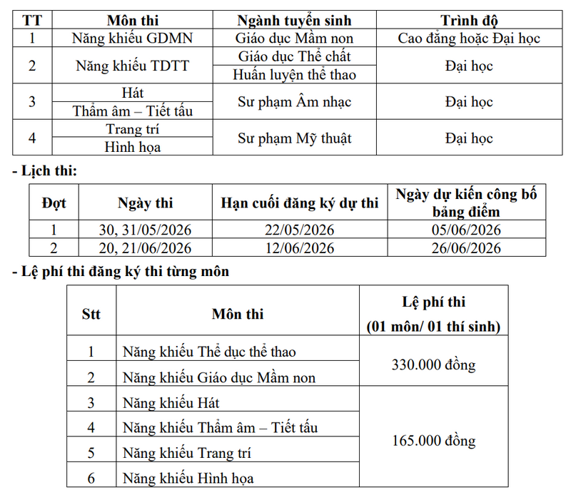 | 7 | 7140206 | Giáo dục Thể chất | T06; T00; T03; T01; T15; T02 | NK TDTT nhân hệ số 2 |