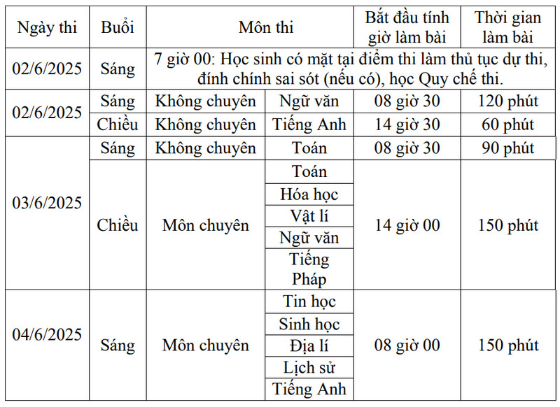 Học sinh được đăng ký dự thi tối đa 02 môn chuyên có lịch thi không trùng nhau