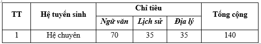 - Môn chuyên: Ngữ văn, Lịch sử, Địa lí (tự luận)