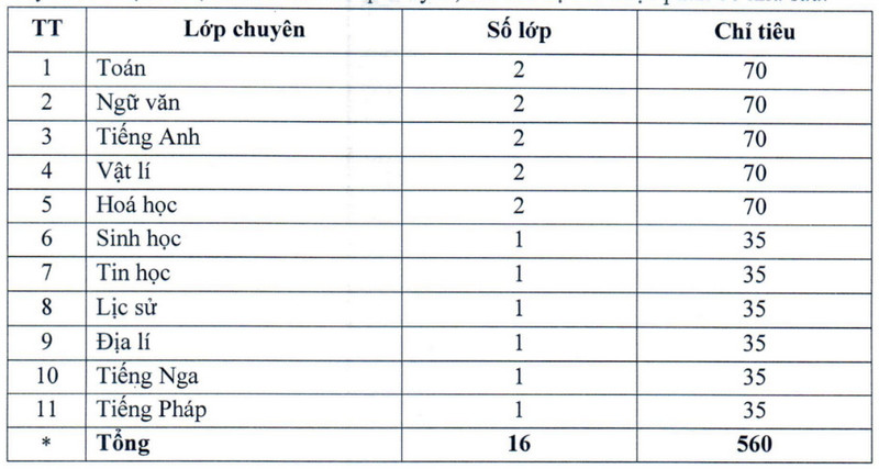 Thông tin tuyển sinh vào lớp 10 trường THPT Chuyên Lê Hồng Phong năm 2025