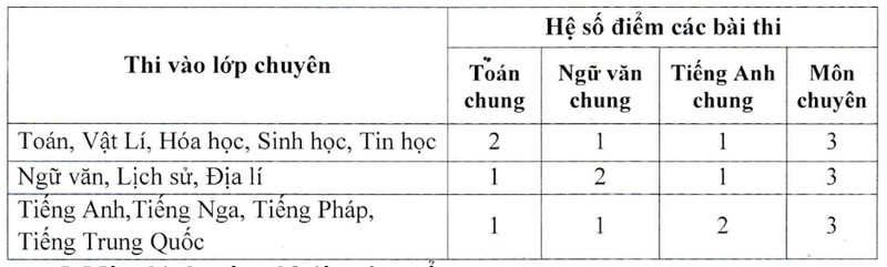 Điểm xét tuyển: Gồm điểm bài thi của 3 môn chung Toán, Ngữ văn, tiếng Anh và môn Chuyên (đã nhân hệ số theo khoản 4 ở trên) không có bài thỉ nào dưới 4,0 điểm. Kỳ thi tuyển sinh vào IÓ’P 10 Trường THPT Chuyên không cộng điểm ưu tiên và điếm khuyến khích.