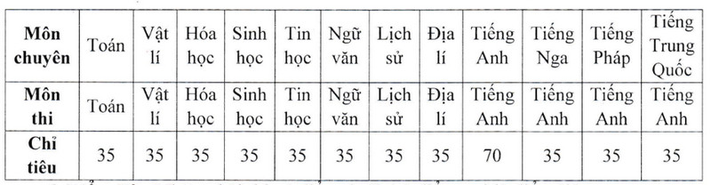 5. Môn thi chuyên, chỉ tiêu xét tuyển