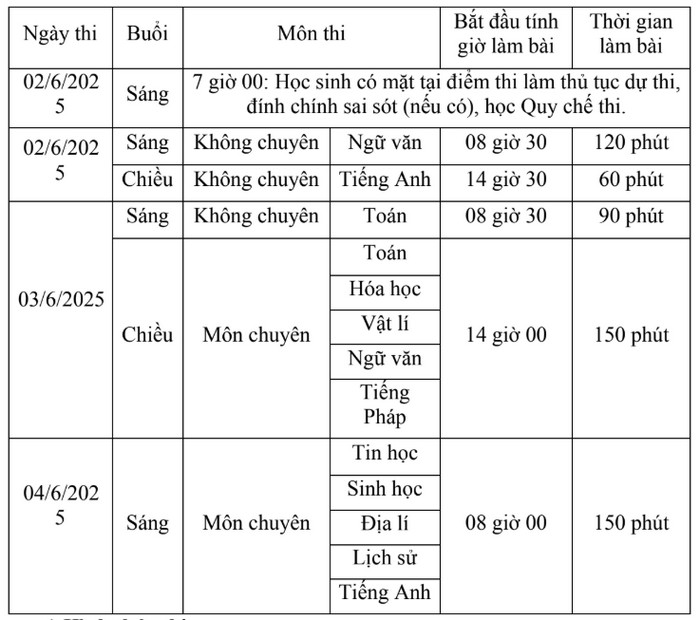 - Chỉ tổ chức thi đối với môn chuyên có ít nhất 12 thí sinh đăng ký.