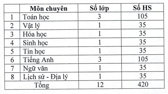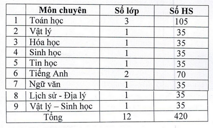 Năm học 2025-2026, tuyển 12 lớp chuyên, mỗi lớp 35 học sinh. Dự kiến 02 phương án: