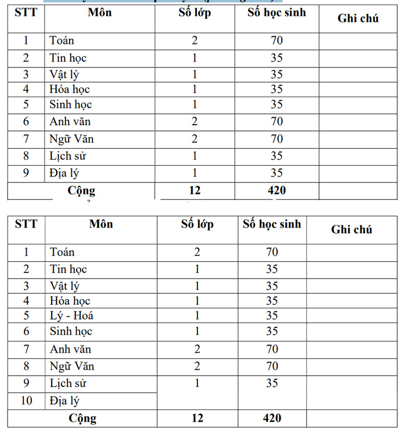 Tuyển sinh 12 lớp chuyên (phương án 1):