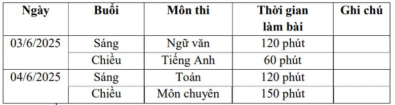 Kỳ thi tuyển sinh vào lớp 10 trường THPT Chuyên Thủ Khoa Nghĩa được diễn ra từ ngày 03 và 04 tháng 6 năm 2025