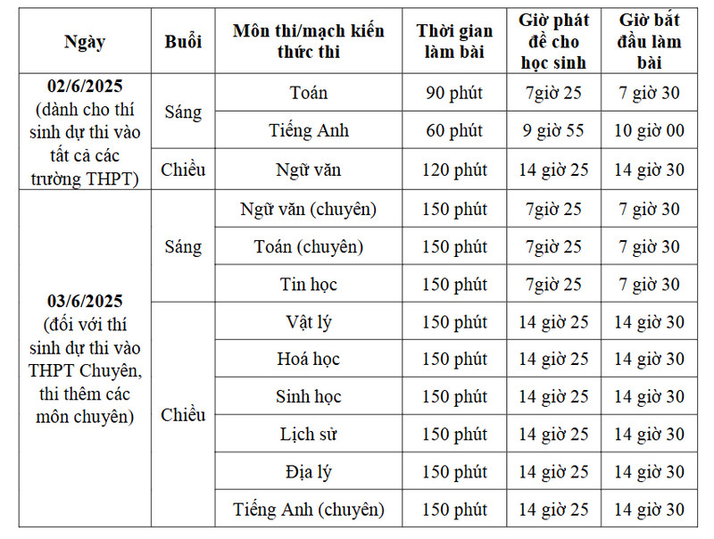 + Các môn chuyên (trừ môn Tin học, Tiếng Anh): Thi theo hình thức tự luận.