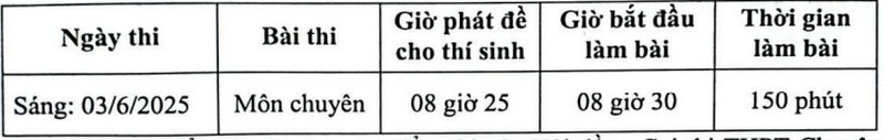 - Lớp chuyên Toán: Bài thi môn Toán.