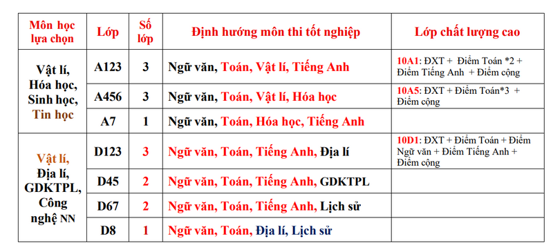 Chọn môn lớp 10