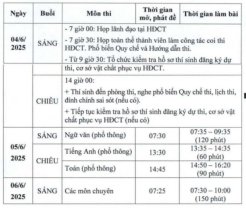 Kỳ thi tuyển sinh 10 Tiền Giang sẽ diễn ra từ ngày 04/6/2025 đến 06/6/2025.